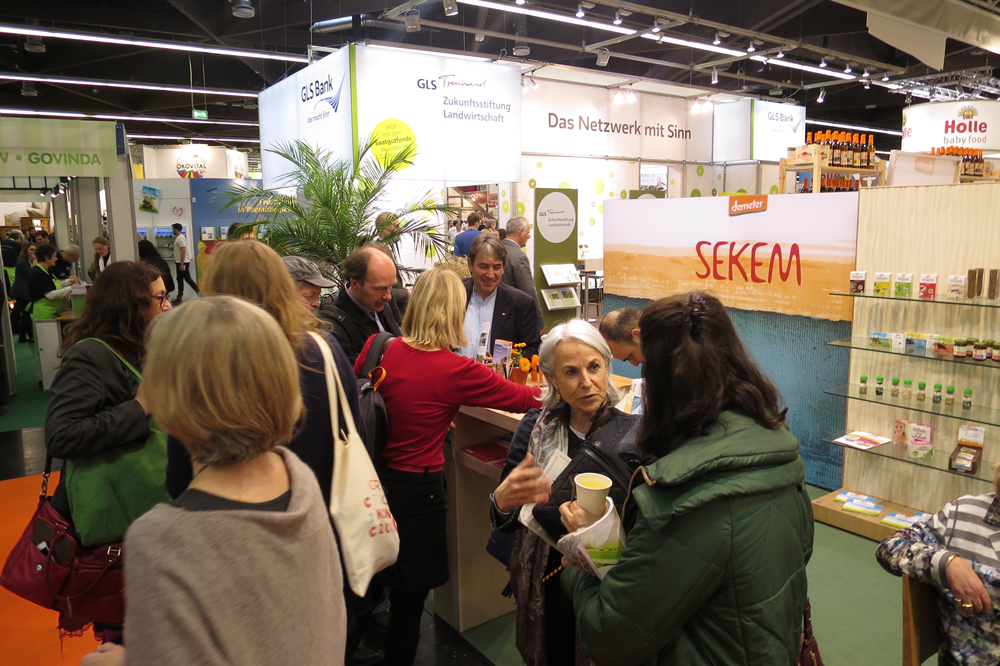Wir haben uns sehr über die Präsenz von Sekem gefreut. Sekem, eine Initiative aus der Nähe von Kairo, hat Teile der Wüste urbar gemacht, gibt tausenden Menschen Bildung und Arbeit, hat maßgeblich dazu beigetragen, dass die Verteilung von Pestiziden per Flugzeug in Ägypten eingestellt wurde und gehört zu den wichtigsten Herstellern von diversen biologischen Lebensmitteln im Land. Auch hier in Bioläden sind Produkte aus Sekem erhältlich.