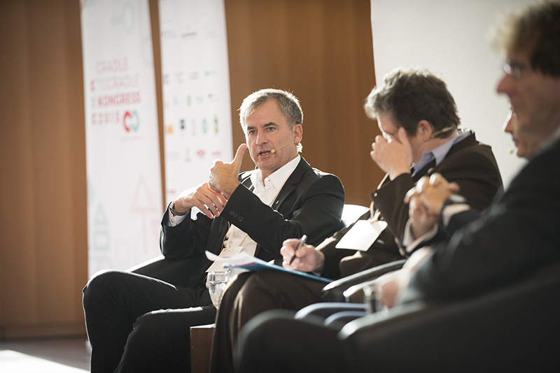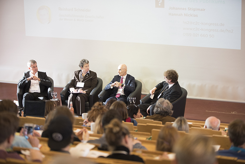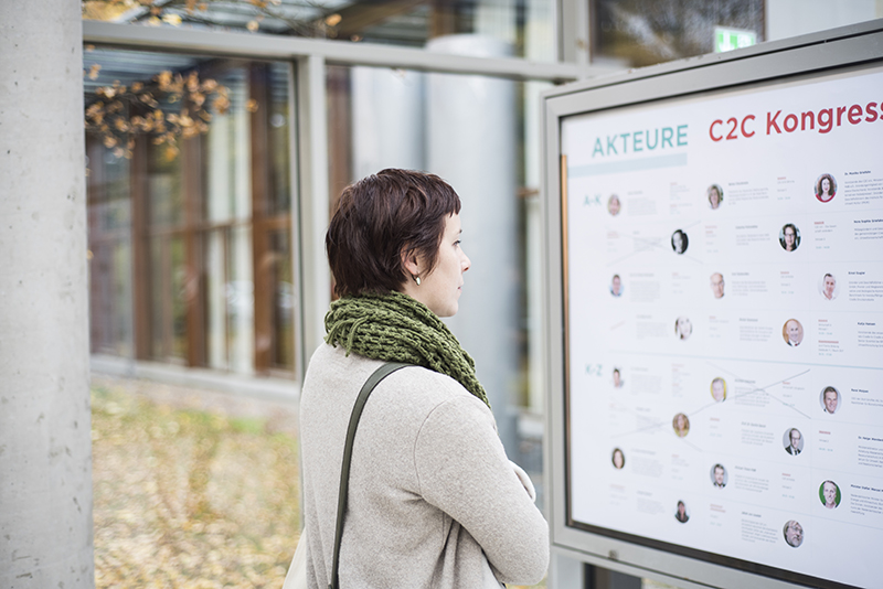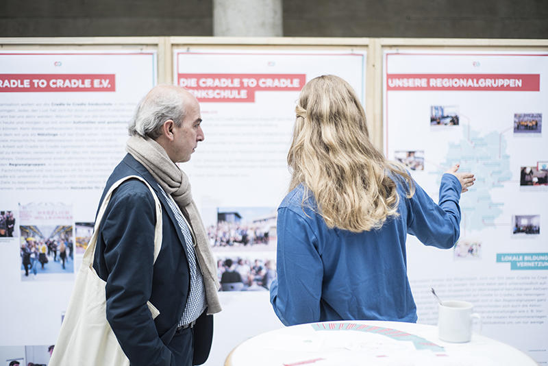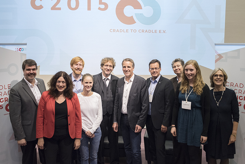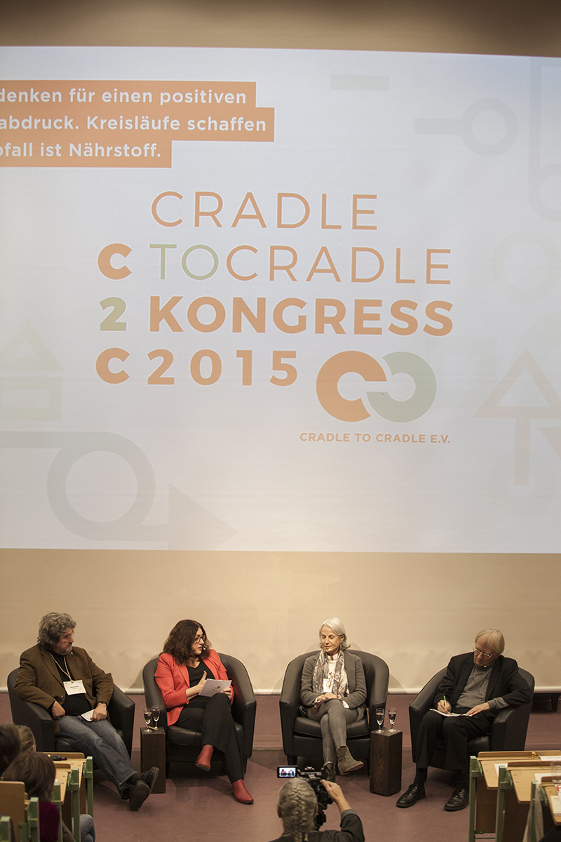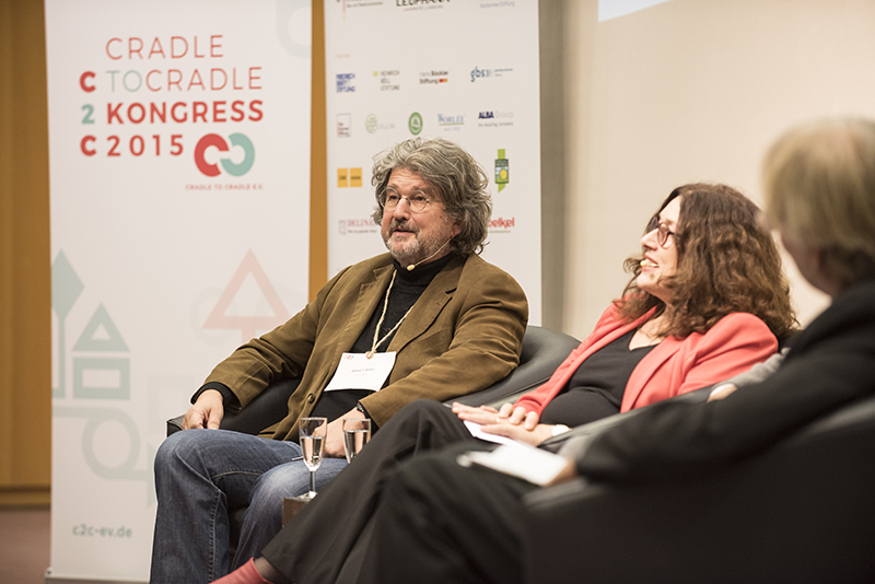In den Wirtschaftsforen diskutierten darüber zum Beispiel Timothy Glaz, Leiter Corporate Affairs bei Werner & Mertz, und Michel Giannuzzi, Geschäftsführer der Tarkett Gruppe. Beide haben den Gedanken einer positiven Wirtschaftsweise schon seit Jahrzehnten integriert und sich nun mit dem Ziel, Produkte nach dem Cradle to Cradle Konzept herzustellen, einer neuen Herausforderung gestellt. „Cradle to Cradle bedeutet, die Perspektive zu ändern“, sagt Timothy Glaz. Man müsse Recycling von Anfang an mitdenken. Und C2C Pionier Prof. Dr., Michael Braungart stellt fest: “Wenn Sie etwas komplett Neues machen, konkurrieren Sie mit perfekt optimierten Produkten aus dem derzeitigen, falschen System.“ Das mache es schwer, Innovationen in den Markt zu bringen. Die Unternehmer lobten unterdessen die Offenheit des C2C-Konzeptes und die Bereitschaft der Pionier-Unternehmen, ihre Erfahrungen und Entwicklungen zu teilen. Darin sahen sie die große Chance dafür, dass C2C sich weiter durchsetzt.