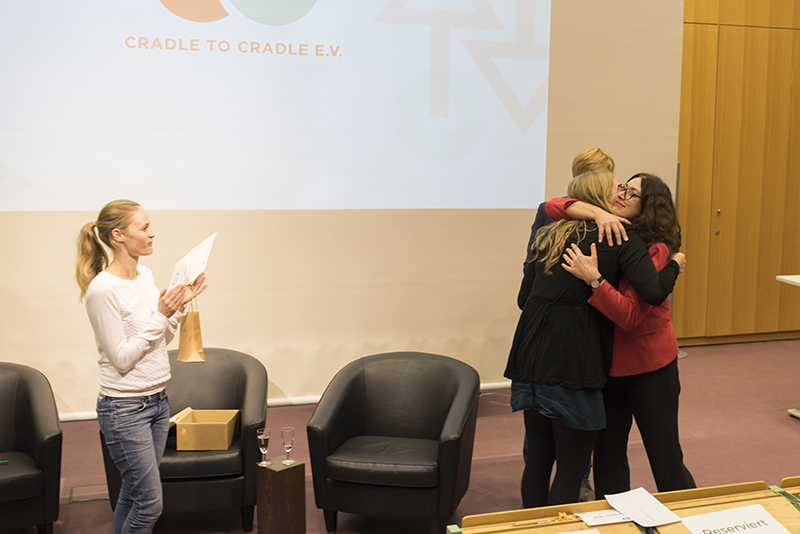 Schon in der Begrüßung lobte die Vorsitzende des Cradle to Cradle e.V., Dr. Monika Griefahn, die Vielfalt in der Zuhörerschaft – von Studierenden bis hin zu den Chefetagen international agierender Unternehmen war alles vertreten.