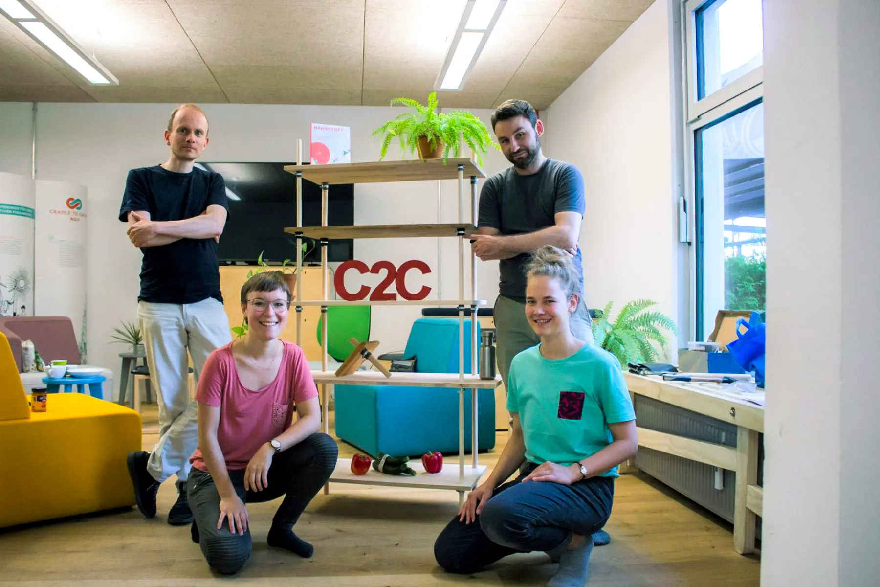 Die Antwort auf diese beiden Fragen war: Wir bauen ein Regal! Im Prozess wollten die Ehrenamtlichen herausfinden, worauf ein*e C2C-Designer*in achten muss; am Ende des Projektes sollte nicht nur ein Regal, sondern auch eine Open-Source-Anleitung für alle Interessierte stehen.