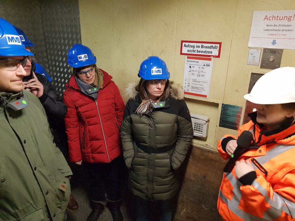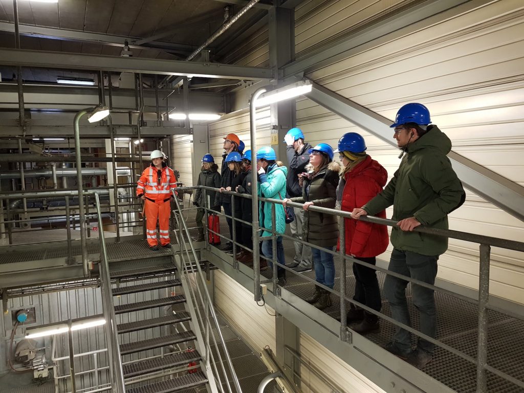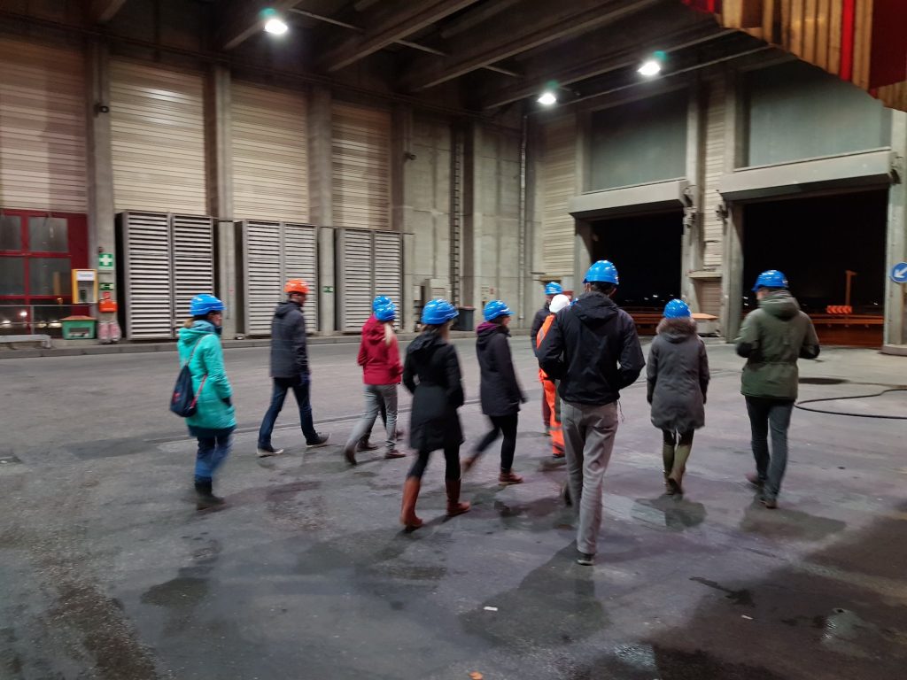 Nach einer ausgiebigen Präsentation und vielen Fragen & Antworten, wurden die Teilnehmer*innen mit Helmen und Schutzbrillen ausgestattet und es ging zunächst in die Abkipphalle, wo sowohl sogenannter Restmüll als auch Altholz angeliefert werden. Wir folgten bei der weiteren Besichtigung dem Weg des Restmülls. Das Altholz wird ein in einer eigenen, separaten Anlage verbrannt.