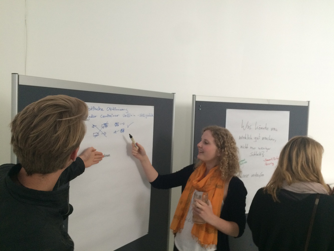 Gemeinsam machte man sich Gedanken dazu, welche Prozesse und Produkte nicht nur weniger schlecht, sondern wirklich gut gemacht werden können. Dabei kam es zu spannenden und sehr unterschiedlichen Ergebnissen. Ein häufiger Ansatz der Teilnehmer war es, effizienzsteigernde Methoden anzuwendnen. Lastwagen nicht leer fahren zu lassen, zum Beispiel, Verpackung zu verringern oder wegzulassen und andere Ansätze, die von Umweltschützern und Unternehmern bereits weitgehend angewendet werden.